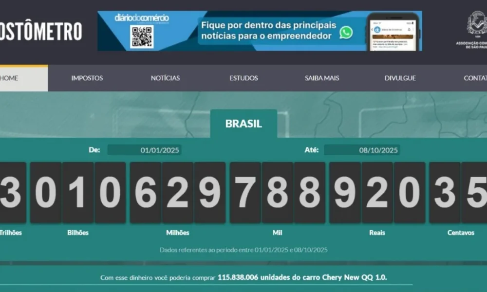 País – O Impostômetro da Associação Comercial de São Paulo (ACSP) registra hoje, terça, 7, o valor de R$ 3 trilhões de arrecadação de impostos no Brasil.