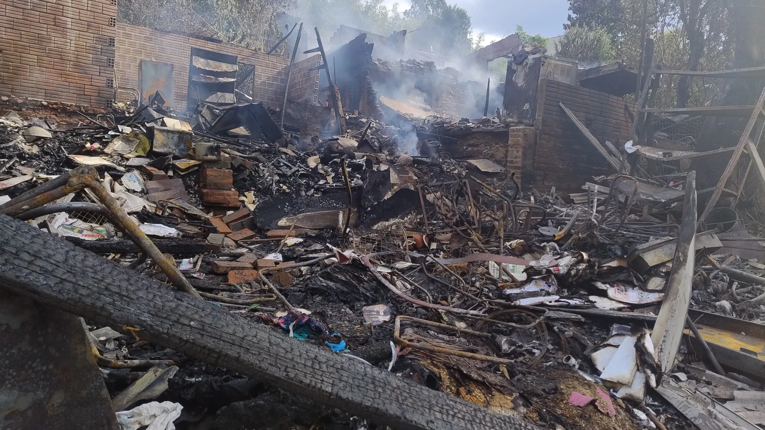 Neste sábado, ainda é possível ver fumaça e destroços no terreno. O cenário é de devastação total: não sobrou nada. A família perdeu móveis, eletrodomésticos, documentos, roupas e todos os pertences pessoais.