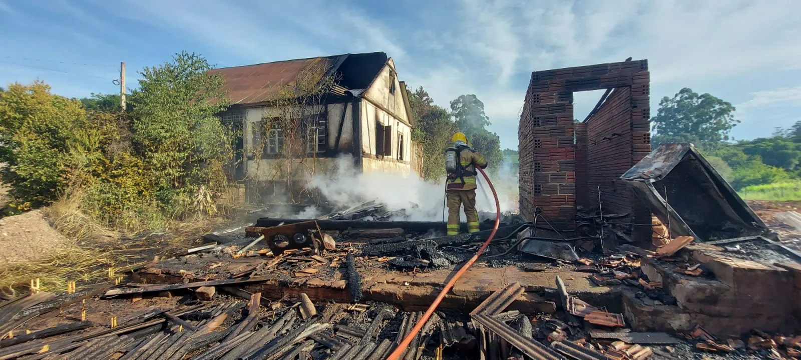 Incêndio destrói chalé na localidade de 14 Colônias, em Lindolfo Collor