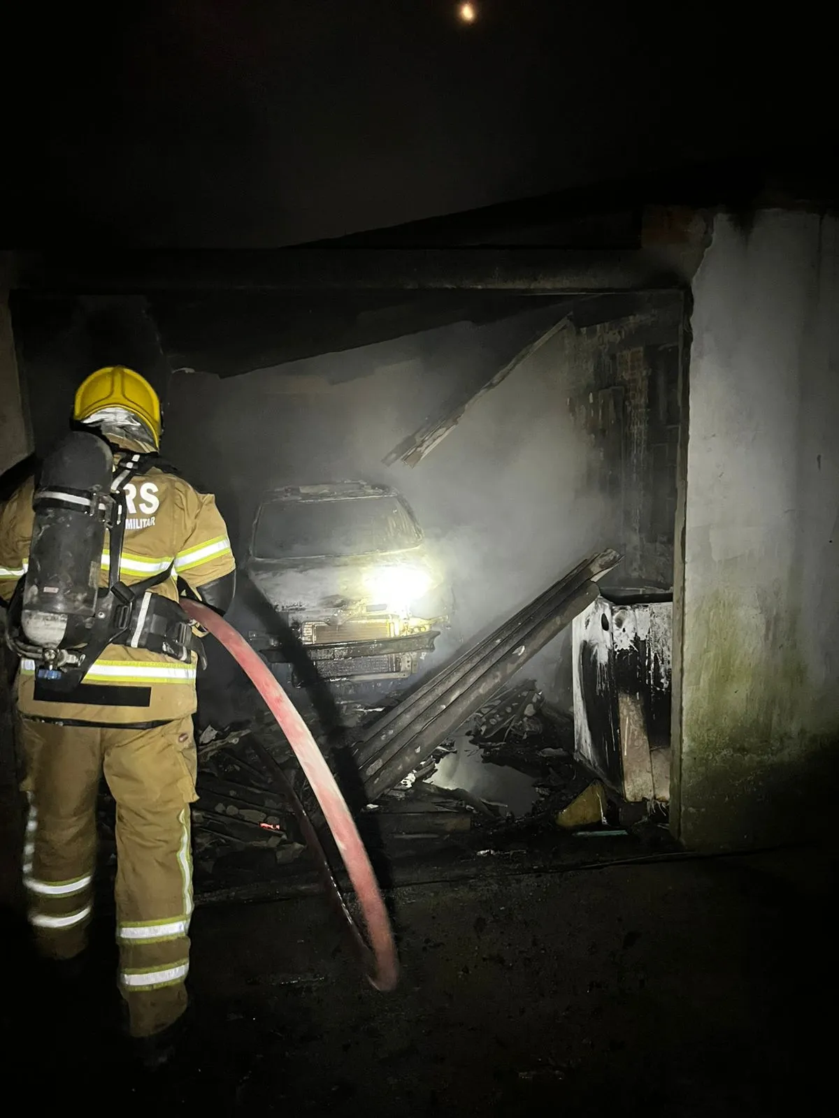 Incêndio destrói garagem e veículo em residência de Estância Velha
