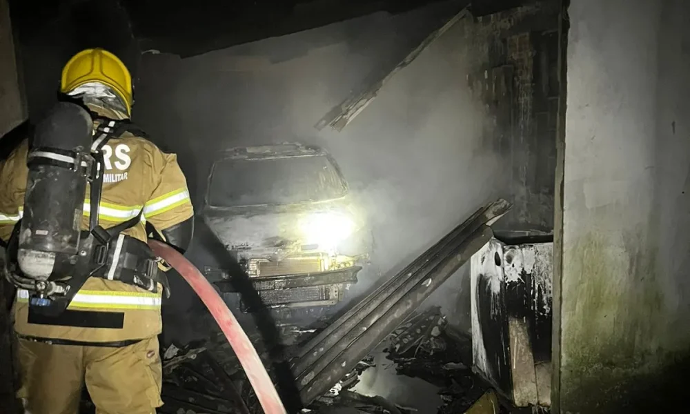 Incêndio destrói garagem e veículo em residência de Estância Velha