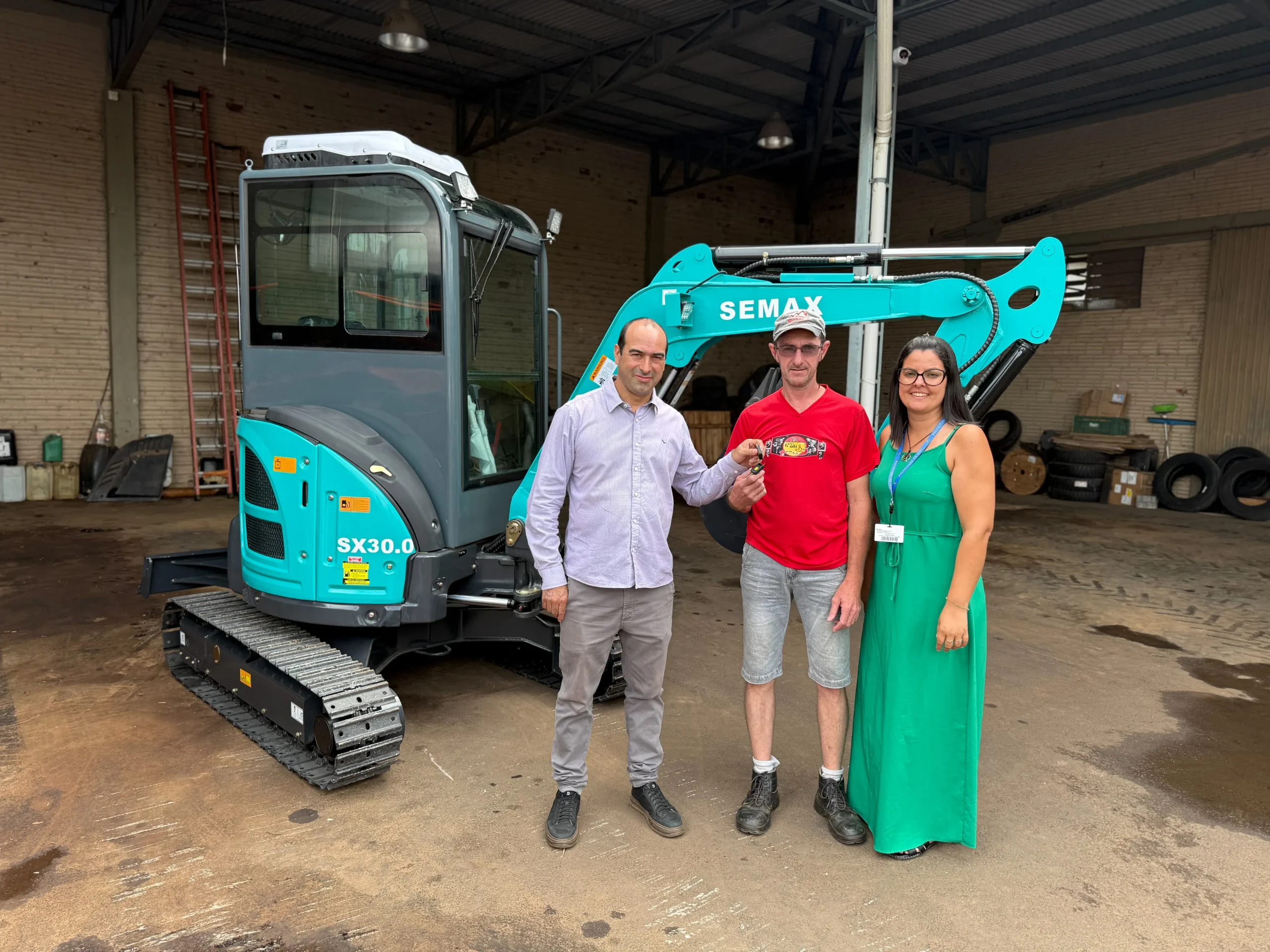 A entrega oficial do veículo contou com a presença do prefeito em exercício, Alexandre dos Santos, a secretária de Obras, Camila Pereira Eichstatt, e um funcionário da Secretaria.