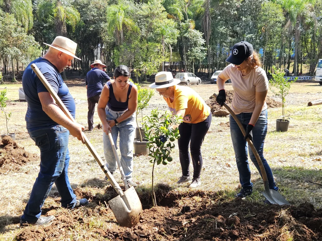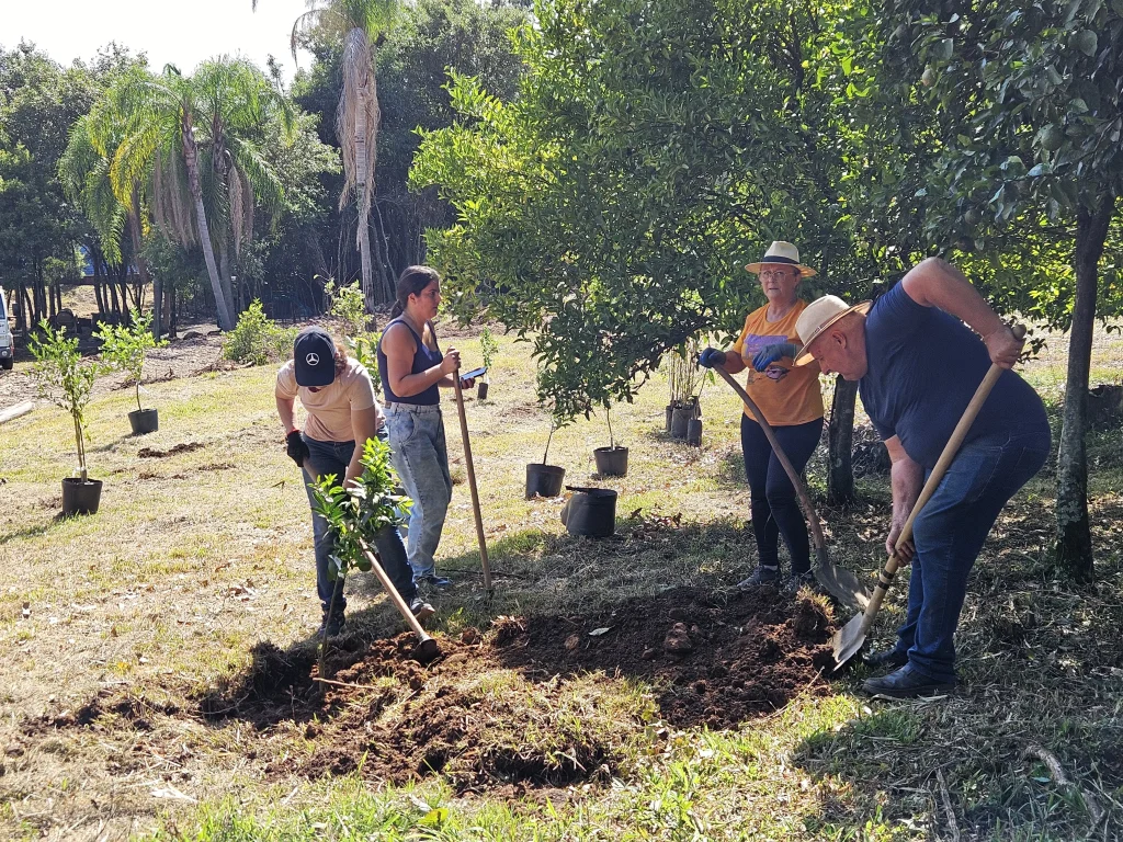 Durante o mutirão, os voluntários realizam diversas atividades, como corte de grama, podas, plantio de flores e árvores frutíferas, além da construção de churrasqueiras, demarcação de quadras esportivas e organização de áreas de lazer infantil.