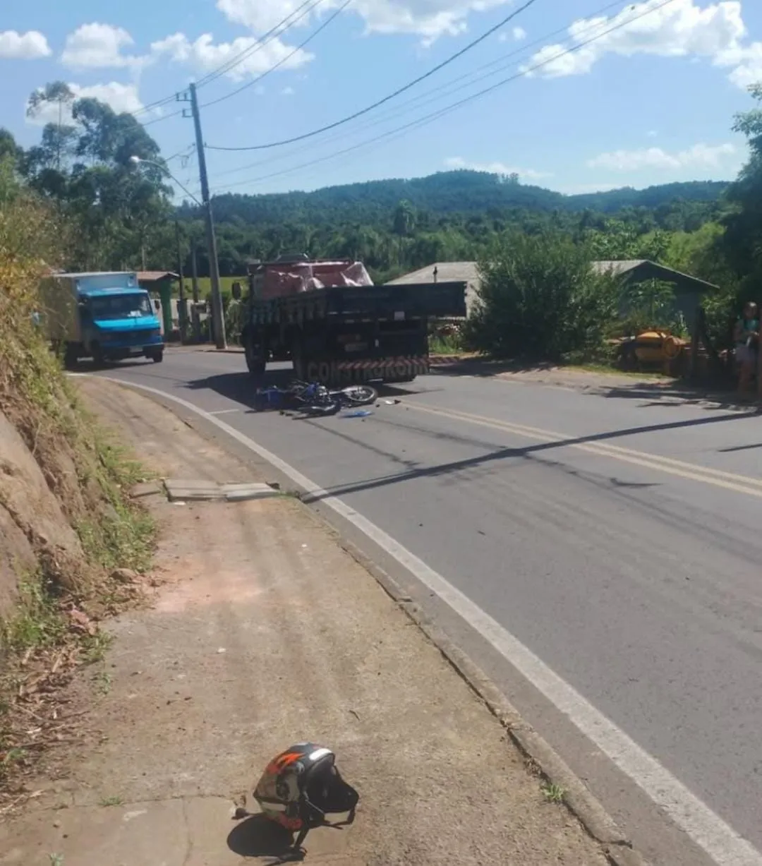Jovem de 21 anos morre após colisão entre moto e caminhão em Lindolfo Collor