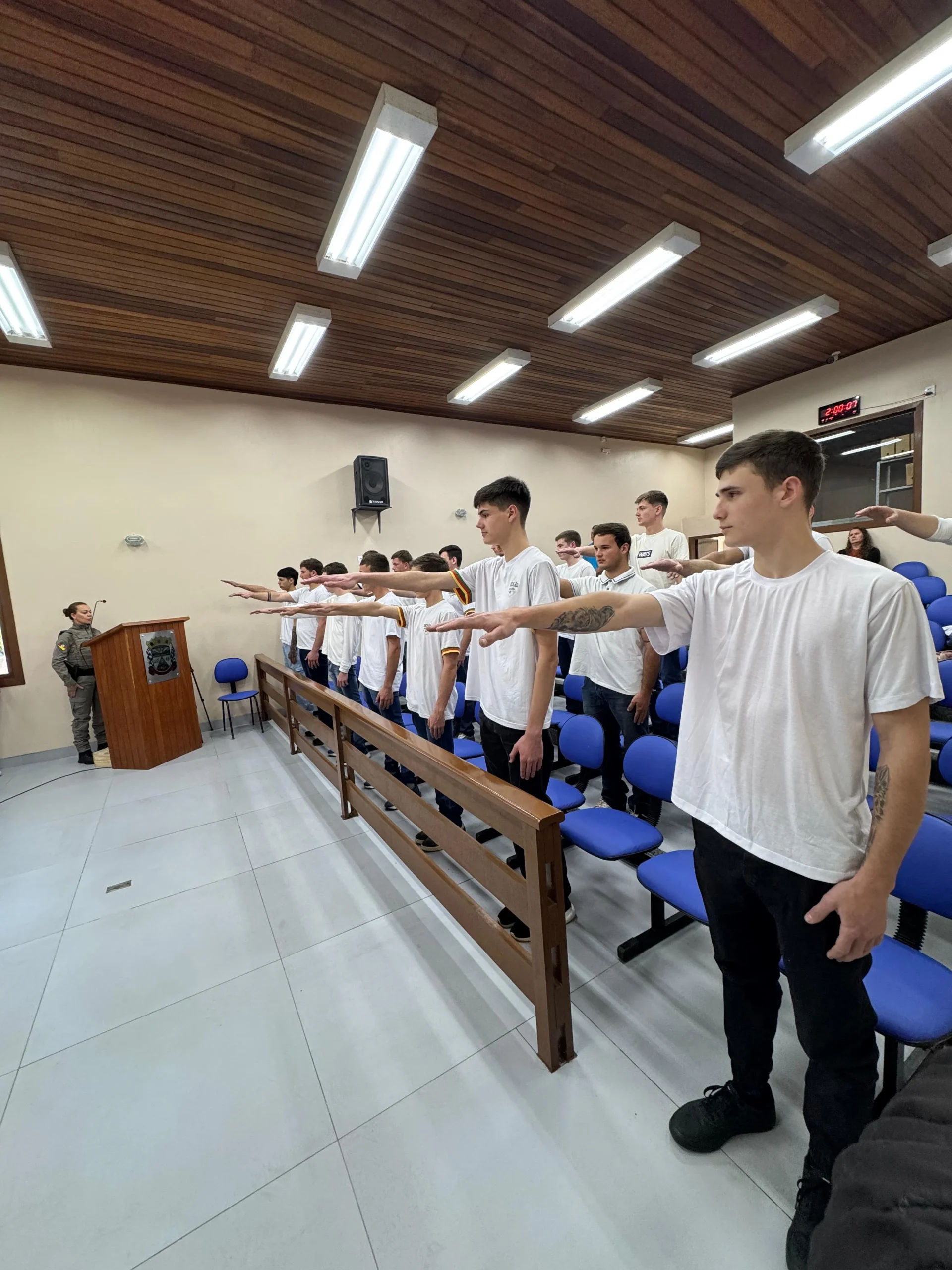 Na ocasião, 14 jovens da cidade de Presidente Lucena e 4 jovens da cidade de Linha Nova realizaram o ato de prestar o compromisso de defender a Pátria, simbolizada pela Bandeira Nacional e cumprir com os deveres militares. Após Juramento, receberam o Certificado de Dispensa de Incorporação das autoridades e familiares presentes.
