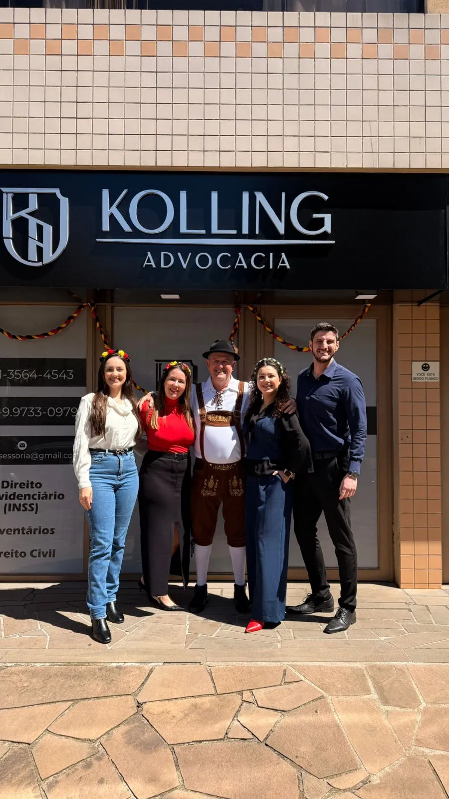 Dois Irmãos – Mantendo a tradição, a equipe Kolling Advocacia celebrou o seu Kerb ao longo da semana. O escritório foi decorado com as cores da Alemanha, e o traje típico, à caráter, fizeram parte do trabalho nos dias que precederam o Kerb, culminando com a celebração na sexta-feira, 26.