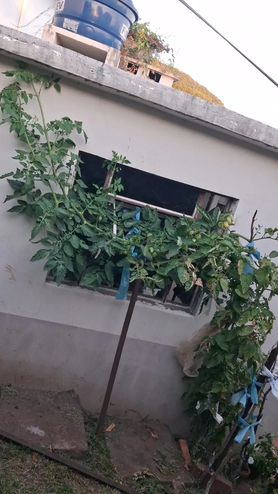 Dona Victoria utilizou de forma criativa os saquinhos plásticos protetores do jornal que recebe do jornaleiro nas madrugadas para amarrar e guiar o crescimento da planta.