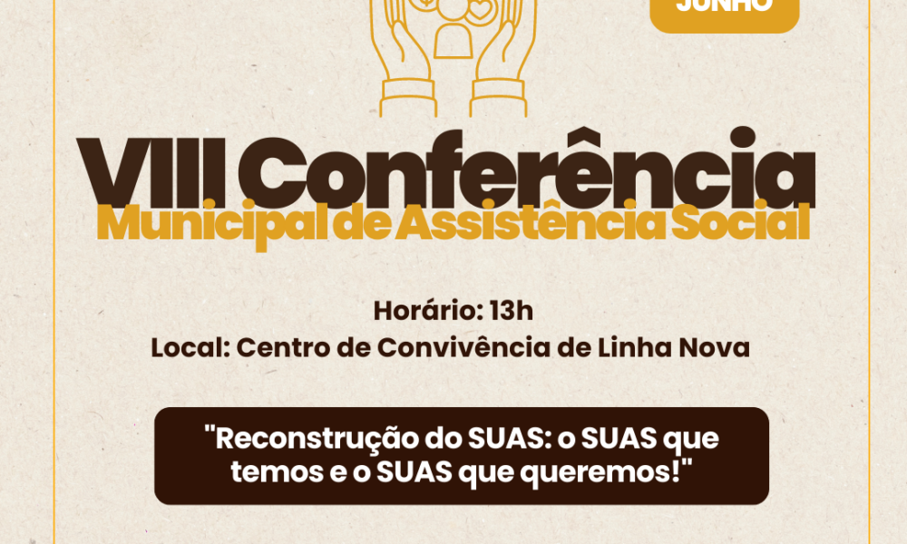 Linha Nova – Será realizada no dia 19 deste mês a 8ª Conferência de Assistência Social, com o tema “O Suas que temos e o Suas que queremos”. O evento será realizado no centro de Convivência do Idoso e inicia às 13 horas. A Secretaria Municipal de saúde e Assistência Social está convidando a comunidade a participar e levar suas ideias ao encontro.
