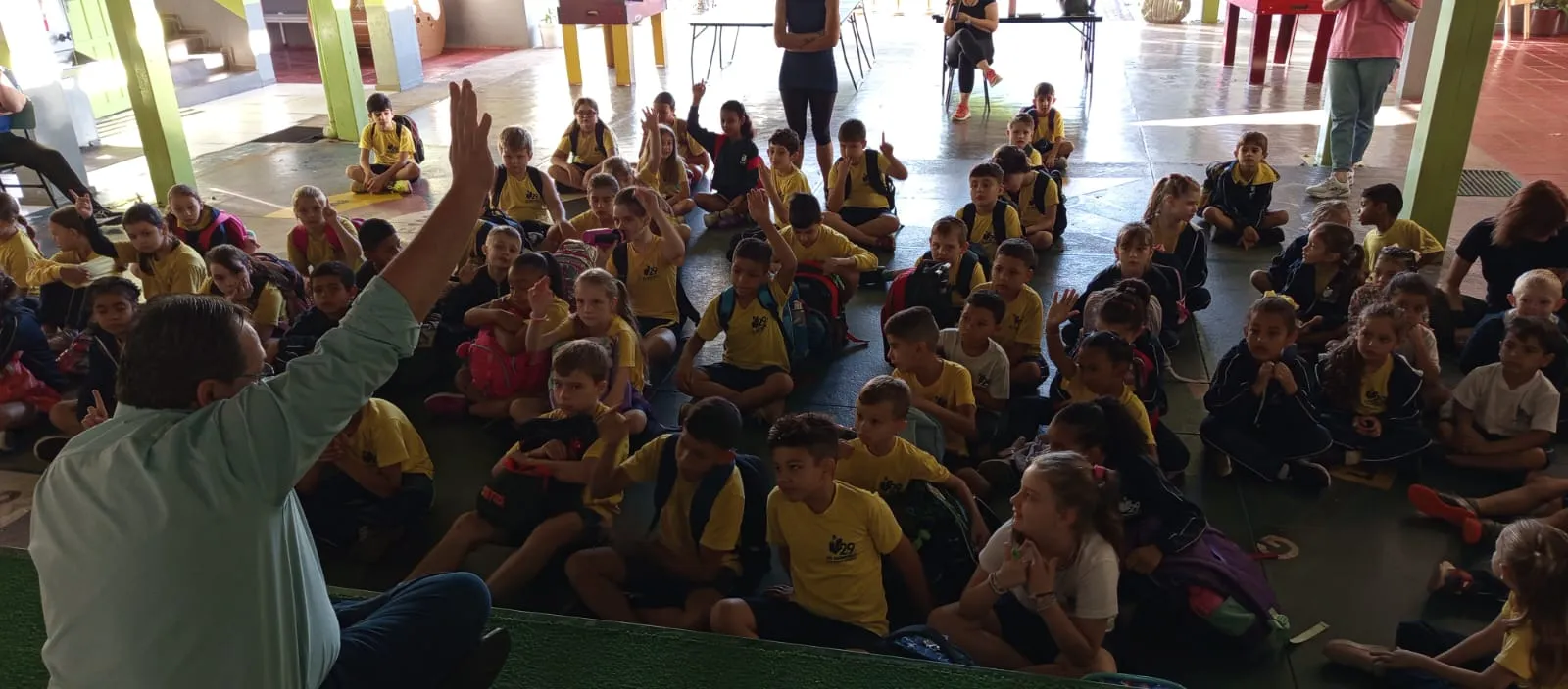 No turno da manhã, são atendidas turmas do nível B (5 anos) até o 4º ano do ensino fundamental. Já no período da tarde, participam alunos do nível A (4 anos) até o 5º ano, ampliando o alcance da ação e garantindo que mais crianças tenham acesso às orientações.