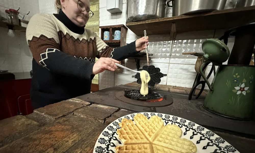 A família Toni, Maria Isabel e Bianca Pilatti, do bairro Walachai, tem uma relíquia em casa que estará exposta no Salão da Comunidade Católica durante o Café da Colônia. Uma centenária wafleira de ferro usada em fogões à lenha, com a receita do waffle gravada em alemão, com letra gótica. Toni estima que ela tenha cerca de 150 anos e foi adquirida de uma moradora de Morro Reuter há alguns anos. Maria Isabel é quem usa o equipamento para a produção de waffle com um sabor todo especial.