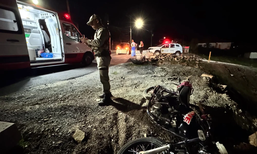 Ivoti – Colisão entre moto e carro deixa motociclista e passageiro feridos, em acidente registrado na noite desta segunda-feira (1º), na rua São Leopoldo, próximo ao acesso de um supermercado.