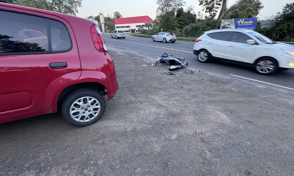 Motociclista fica ferido após carro cortar sua frente na BR-116 em Ivoti