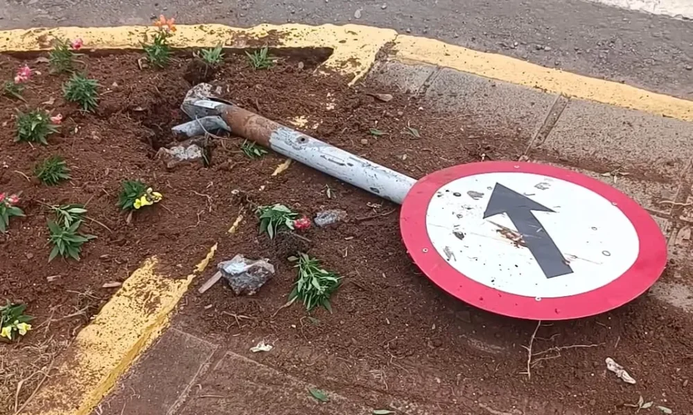 Ivoti – Durante a manhã de hoje, um condutor não identificado destruiu um canteiro e derrubou uma placa de sinalização no centro de Ivoti. O local tinha recebido recentemente mudas de flores, que acabaram amassadas. Até o começo da tarde, o local permanecia da mesma fora, com a placa caída.