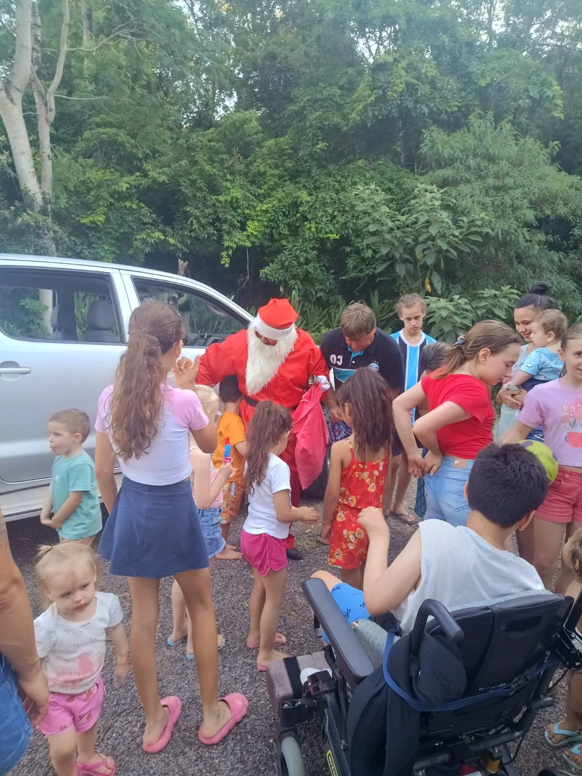 Picada Café – Um evento de Natal e muitas certezas, a alegria contagia adultos e crianças. As celebrações natalinas do Bairro Bela Vista mais uma vez ultrapassaram fronteiras e levaram o Papai Noel, doces e alegria também aos moradores dos Loteamentos Encosta da Serra e Alto da Colina. Foi domingo, dia 7. Idealizado pela Associação de Moradores do Bairro Bela Vista, a ação teve o apoio de Sicredi, Cresol, Mercado Compre Bem, Michele Utzig, Carina Adams, Goreti Link, Eloir Bauer, da própria associação, e a Câmara de Vereadores (Eloir, Waldir, Jair, Carina, Franciele, Marilei, Patricia e Tadeu). “Viemos aqui, publicamente, agradecer nossos patrocinadores que tornaram possível a celebração natalina. Com o apoio de todos a nossa comunidade viveu momentos de muita alegria e união”, descreveu a Associação. “Gratidão por acreditarem no nosso evento e na força da nossa comunidade”, reiterou. A tarde teve ainda brinquedos na sede da associação para a diversão da criançada.
