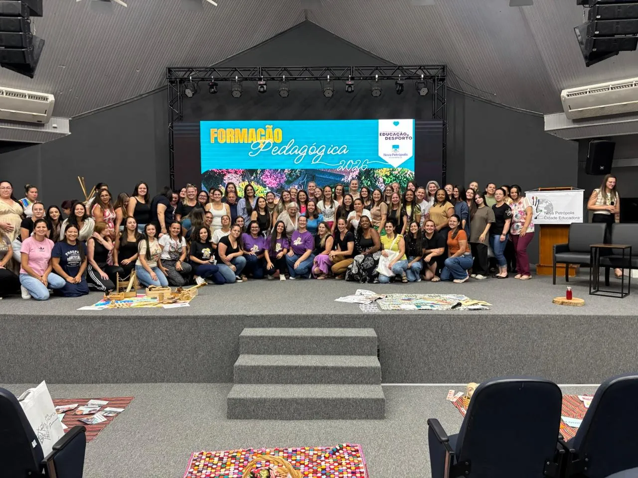 Nova Petrópolis – A Secretaria Municipal de Educação e Desporto de Nova Petrópolis promoveu, na última sexta-feira, 23 de janeiro, uma intensa jornada de Formação Pedagógica no Auditório do Centro de Eventos. O encontro reuniu 215 profissionais, incluindo auxiliares de desenvolvimento infantil, monitores educacionais, educadores sociais, coordenadores, supervisores, além de diretores e vice-diretores da rede municipal de Educação Infantil.