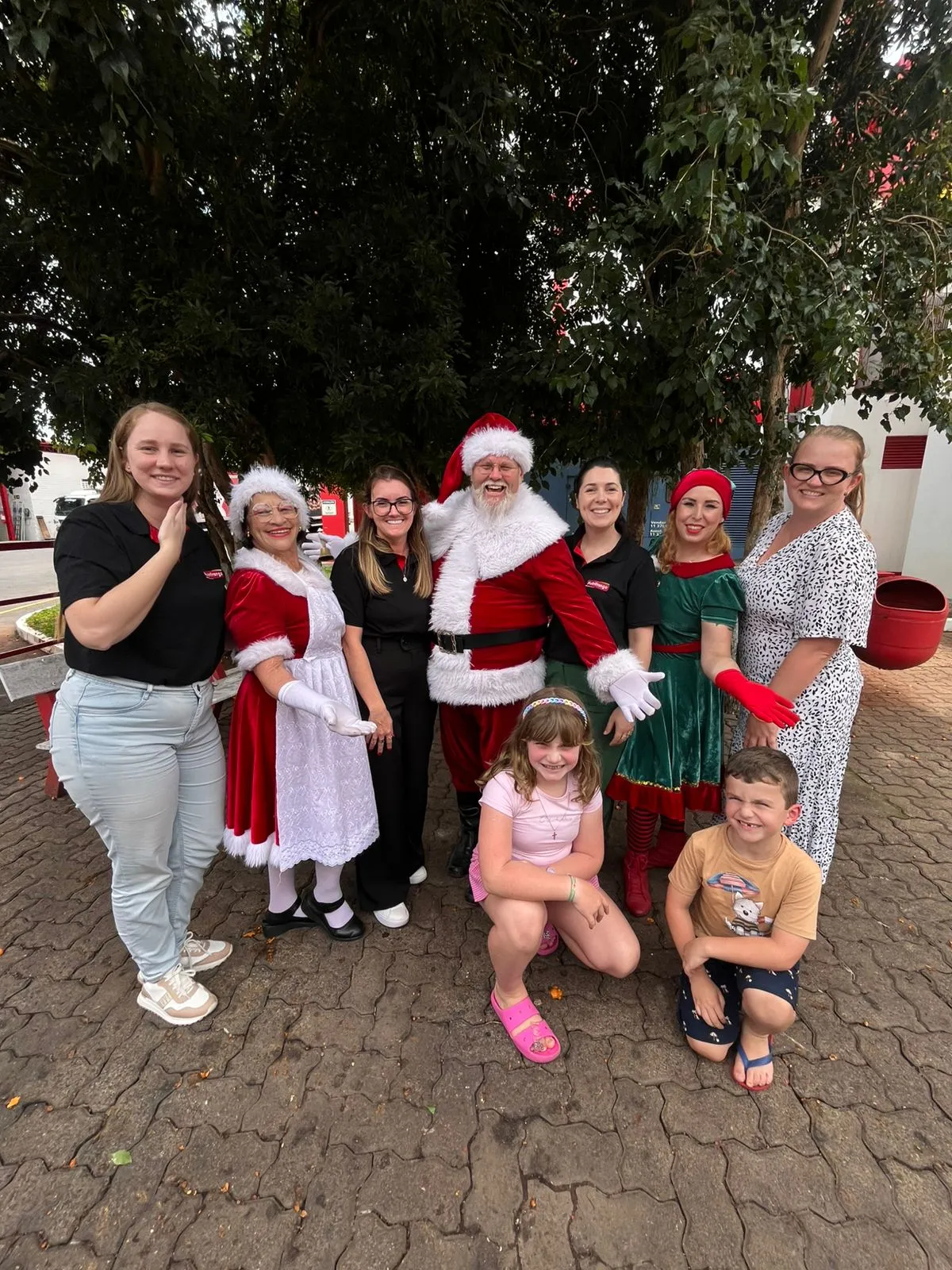 Nutrifrango recebe a visita do Papai e Mamãe Noel, com a alegre duende