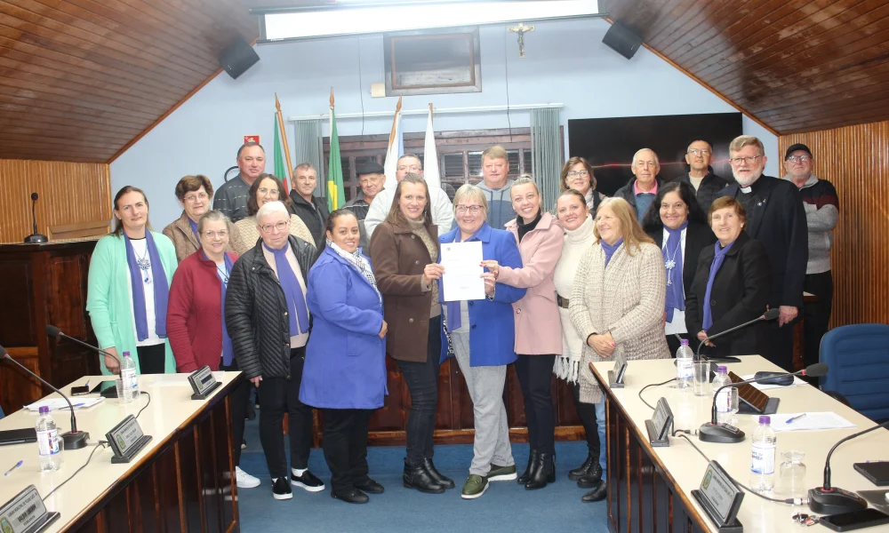 Picada Café – Uma noite marcante de muito frio e emoção. Assim foi a sessão da Câmara de Vereadores de terça-feira, 10, quando a casa homenageou a Ordem Auxiliadora de Senhoras (OASE) da Comunidade Evangélica São João. Entidade essa que em junho completou seus 60 anos. Na sessão as vereadoras Franciele Simon Diehl e Carina Adams apresentaram uma Moção de aplausos, ato esse que teve o apoio dos demais vereadores.