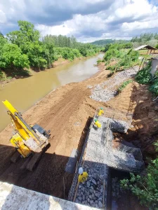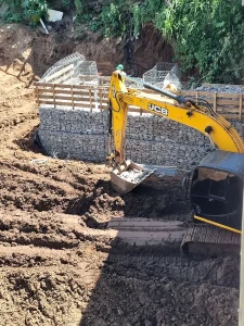 Obra de contenção com gabiões avança na cabeceira da ponte do Campestre