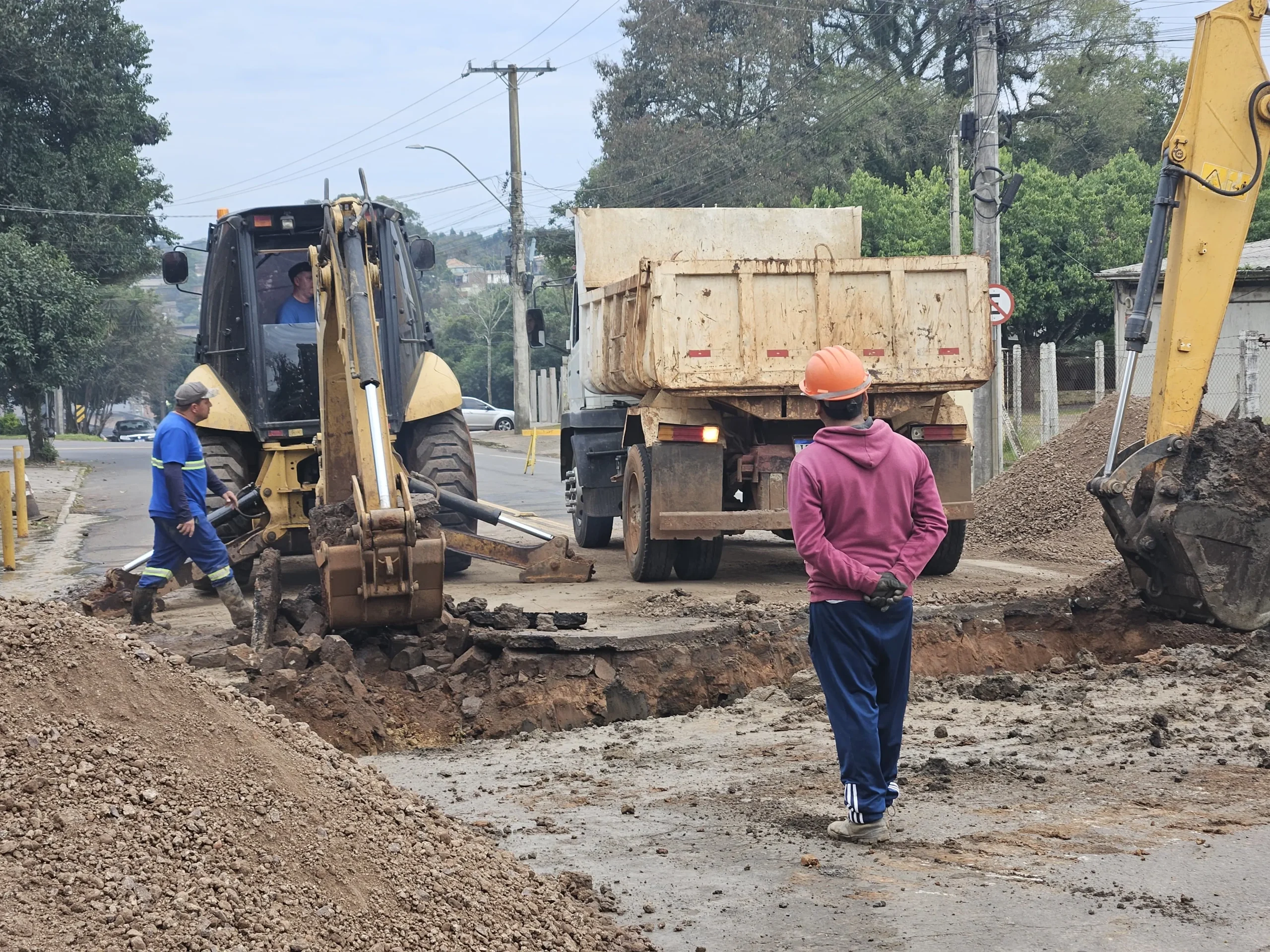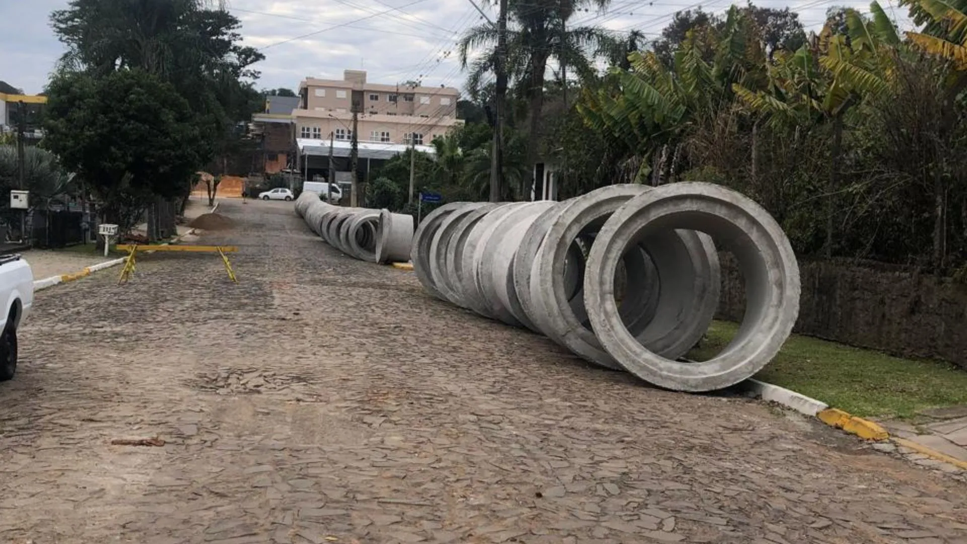 Obra de drenagem pluvial atende demanda antiga no bairro Bom Jardim em Ivoti; trânsito está bloqueado na Avenida Capivara