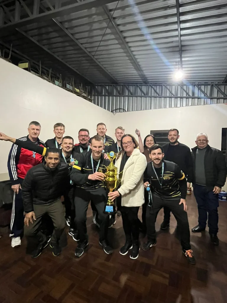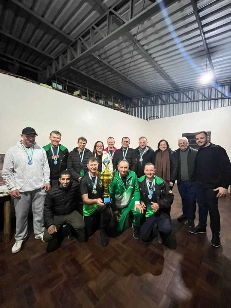 São José do Hortêncio – Encerrou na sexta-feira, 5, a edição 2025 do Municipal de Bolão. Os Destemidos sagraram-se a equipe campeã. Posto ficou em segundo e Brill em terceiro. A premiação foi entregue logo após os últimos pinos derrubados nas canchas da Sociedade São Jacó. A prefeita Ester Elisa Dill Koch, os secretários municipais Verônica Engeroff Koch e Felipe Trein e os vereadores Darci Cruss e Adilson de Lima participaram da solenidade organizada pela professora Camila Bauer, coordenadora do Desporto Municipal.