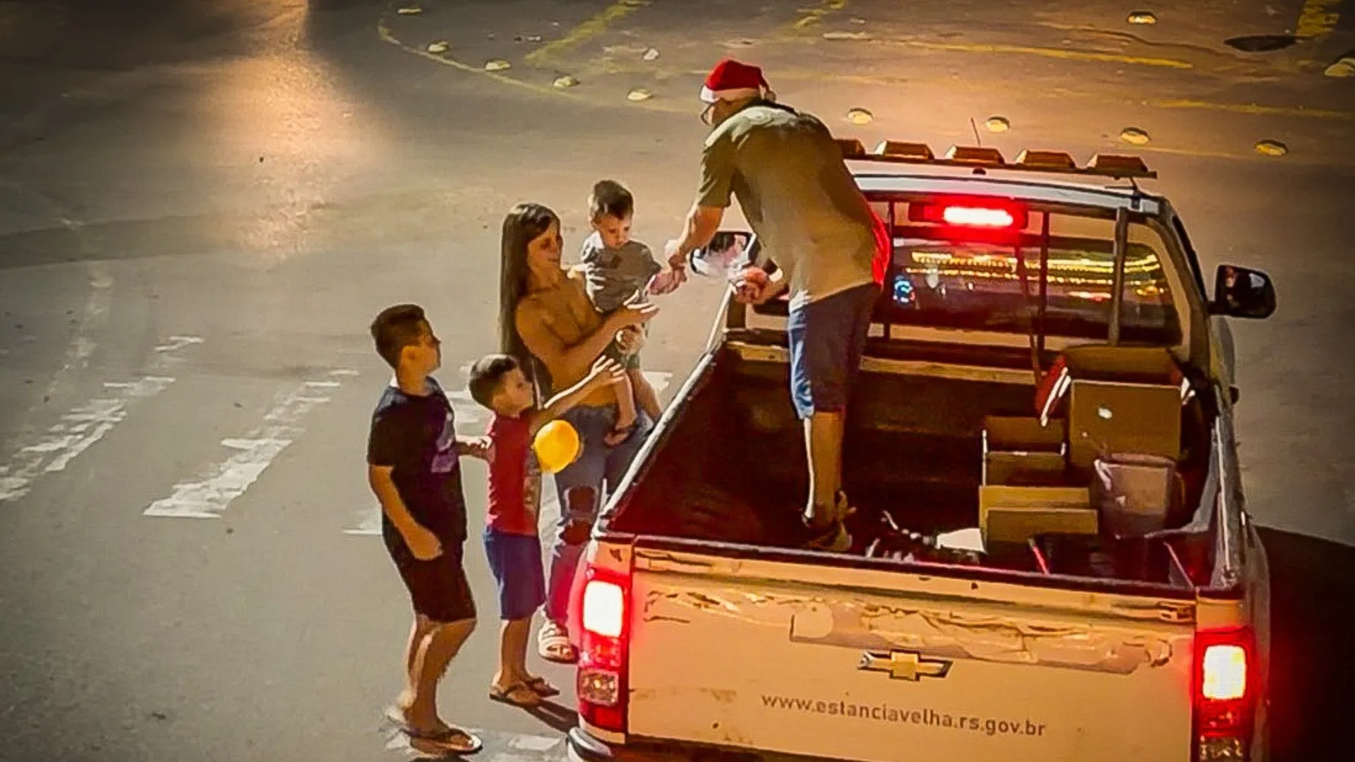 O Papai Noel percorreu bairros de Estância Velha na noite de terça-feira (23) em uma ação social organizada pela Secretaria de Obras e Serviços Urbanos (SEOSU). A atividade levou o personagem natalino a diferentes pontos da cidade, onde moradores acompanharam a passagem do caminhão iluminado que conduzia o bom velhinho.