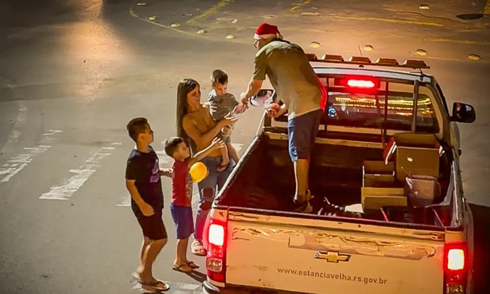 O Papai Noel percorreu bairros de Estância Velha na noite de terça-feira (23) em uma ação social organizada pela Secretaria de Obras e Serviços Urbanos (SEOSU). A atividade levou o personagem natalino a diferentes pontos da cidade, onde moradores acompanharam a passagem do caminhão iluminado que conduzia o bom velhinho.