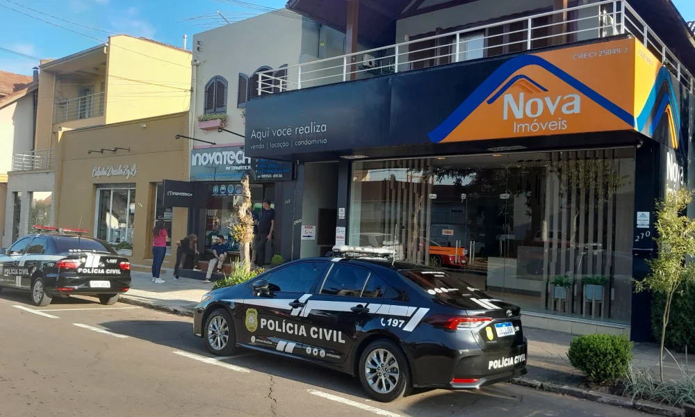 A Polícia Civil de Nova Petrópolis realiza na tarde desta quarta-feira (23/04) uma ação em imobiliária acusada de desviar dinheiro de clientes. São cumpridos três mandados de busca, com apreensão de documentos e telefones celulares. Em breve mais informações.
