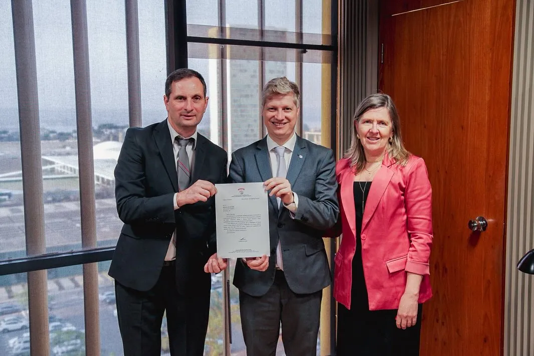 Nesta quinta-feira, estiveram em audiência junto aos técnicos do Ministério da Agricultura e Pecuária (Mapa) para tratarem de projetos cadastrados junto ao Programa Nacional de Modernização e Apoio à Produção Agrícola (Promaq) e Programa Nacional de Estradas Rurais (Proner). Também estiveram com os deputados federais Marcel van Hattem (NOVO), Franciane Bayer (Republicanos), Lucas Redecker (PSDB) e Afonso Motta (PDT). No gabinete do senador Hamilton Mourão (Republicanos), foram recebidos pela chefe de gabinete Liziane Bayer.