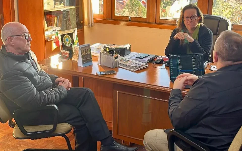 São José do Hortêncio – A segurança pública continua sendo uma das prioridades da gestão municipal. Na segunda-feira, 7 de julho, a prefeita Ester Elisa Dill Koch e o vice-prefeito José Maurício Heck receberam no gabinete um representante de uma empresa especializada em tecnologia de monitoramento. O encontro teve como objetivo conhecer soluções avançadas para controle e rastreamento de veículos e pessoas.