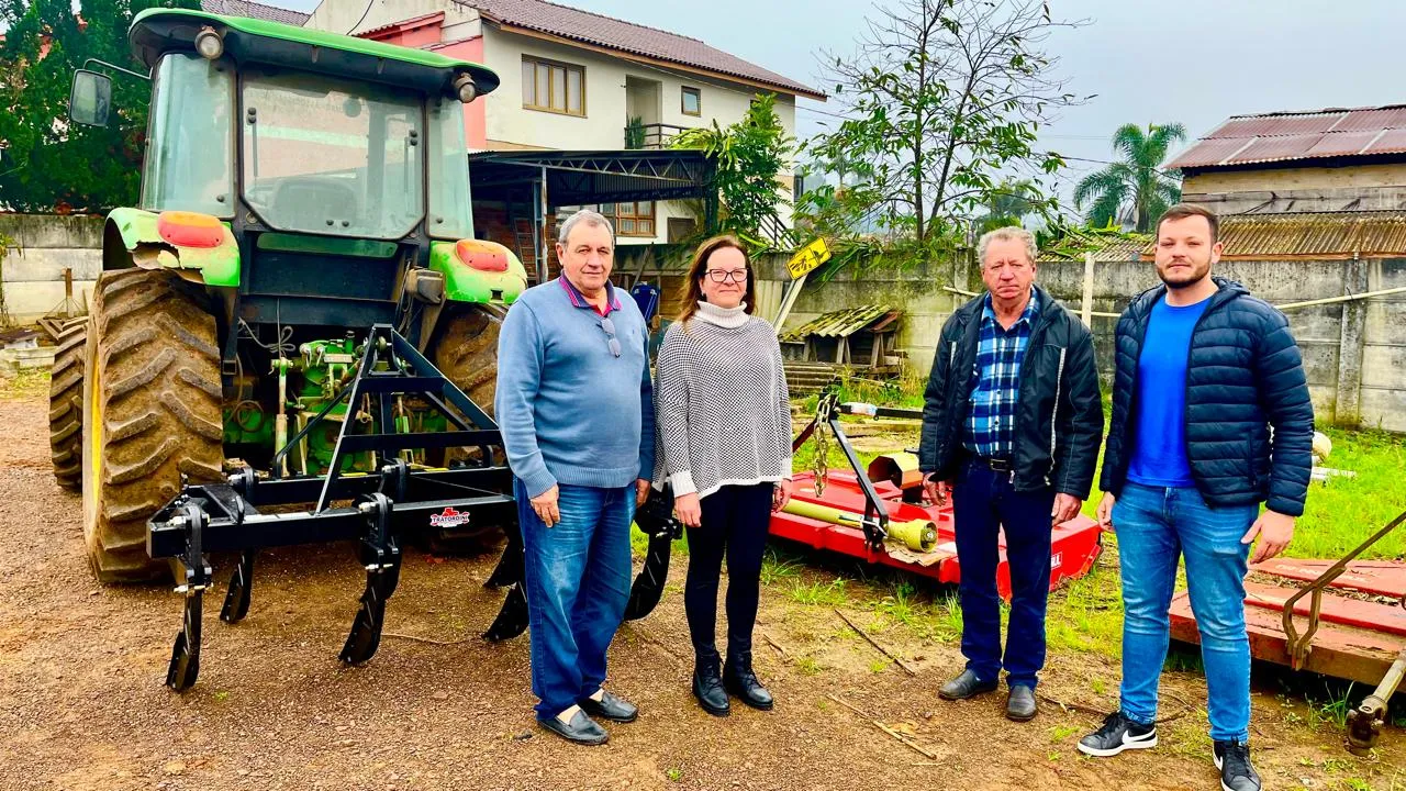 São José do Hortêncio – Na segunda-feira, dia 14, a Prefeita municipal, Ester Elisa Dill Koch e o Secretário de Agricultura e Meio Ambiente, Felipe Edgar Trein realizaram a entrega de um pé de pato de 7 hastes e uma roçadeira hidráulica, equipamentos adquiridos com recursos próprios cedidos em comodato a Associação comunitária dos moradores do Arroio Bonito. Na ocasião, a entrega dos equipamentos foi recebida pelo presidente da associação dos moradores, Jaime Reis e pelo tesoureiro, Ilson Pedro Heck.