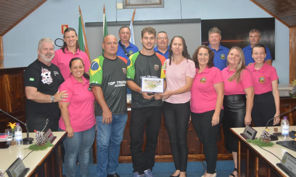 O jovem Mateus Krein foi agraciado pela dedicação a queda de braço. Em dois anos o jovem já disputou e foi campeão gaúcho em sua modalidade, disputou dois Campeonatos Brasileiros e, em 2025, disputou o Panamericano na Argentina. Ele explica que sempre teve uma força muito grande e que, o esporte, lhe abriu novas porteiras. “Foi conhecendo a equipe V8, de Farroupilha, que tive mais experiência e conheci o mundo do esporte. Neste período só tenho a agradecer o apoio da família, do treinador Cipriano Miranda, além do amigo e incentivador Sérgio Naleagaca que apóia e já me levou duas vezes a São Paulo”, frisou.