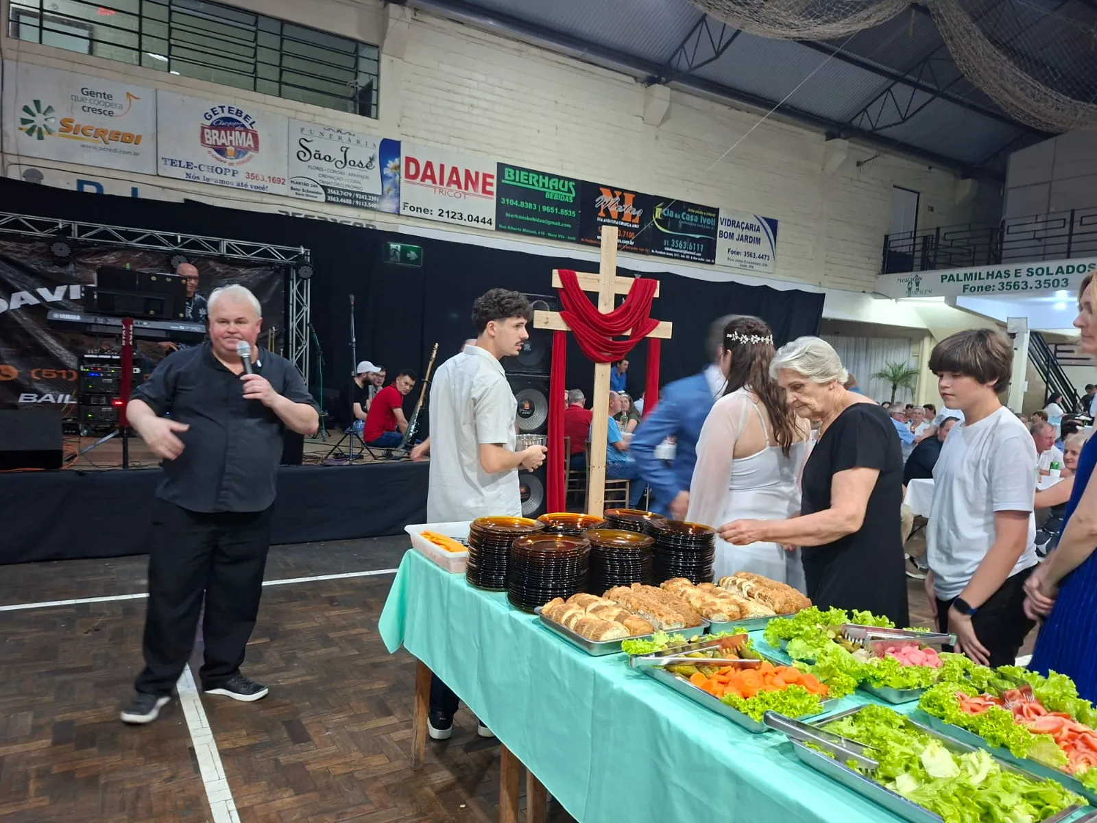 O casamento comunitário foi realizado antes do baile, na Igreja Matriz, e a celebração foi presidida pelo padre Jacó Wuaden. Cinco casais receberam o sacramento durante a missa, que teve animação litúrgica do Coral Santa Cecília. O baile, realizado no Ginásio da Paróquia teve animação da Davis & Eron e Banda. O jantar também foi muito elogiado, foi servido carne suína, galeto, massa, arroz, maionese e saladas.