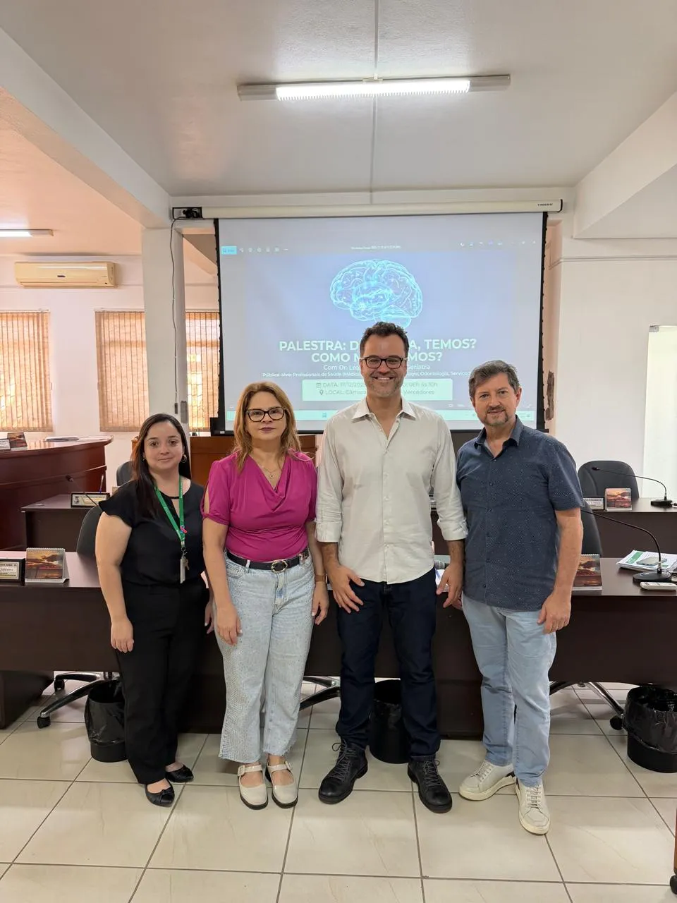Durante a palestra, o especialista também apresentou os resultados de uma pesquisa realizada com profissionais da Atenção Primária do município, cujo objetivo foi identificar necessidades locais e subsidiar o desenvolvimento do projeto de forma alinhada à realidade dos serviços de saúde.