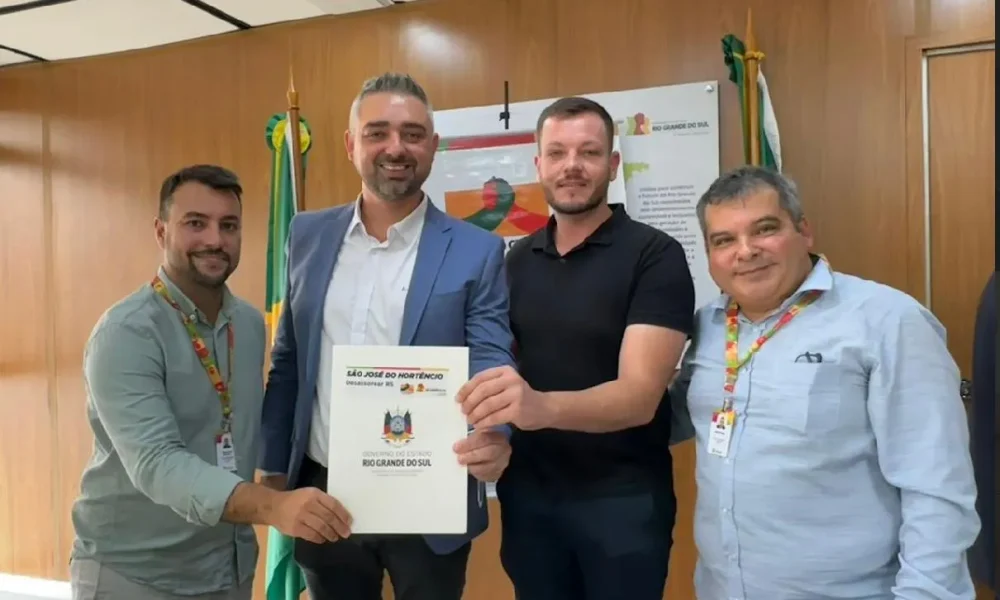 São José do Hortêncio – Na terça-feira (1º), foi formalizado o Termo de Cooperação entre o Município e o Governo do Estado para implementar o Programa Desassorear RS. O objetivo da ação é remover 12.268 metros cúbicos de sedimentos acumulados no leito do Rio Cadeia, como parte dos esforços para evitar enchentes e melhorar o escoamento das águas.