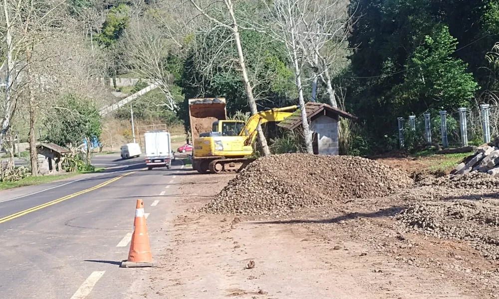Secretaria de Obras recupera acostamento na BR-116 em Picada Café