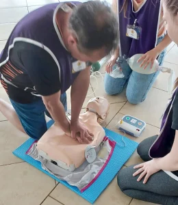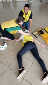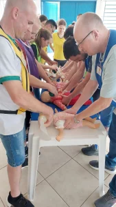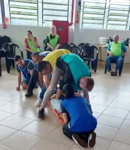 Durante o treinamento, os participantes revisaram protocolos de Suporte Básico de Vida (BLS), abordando temas como reconhecimento de paradas cardiorrespiratórias, realização de reanimação cardiopulmonar (RCP), controle de hemorragias, imobilizações e atendimento em acidentes domésticos ou de trânsito. Além da parte teórica, os servidores realizaram simulações práticas, vivenciando cenários de resgate e atendimento rápido.