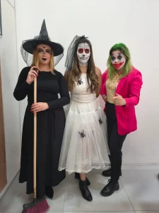 Andressa, Katiele e Jucélia celebrando Halloween com muita criatividade