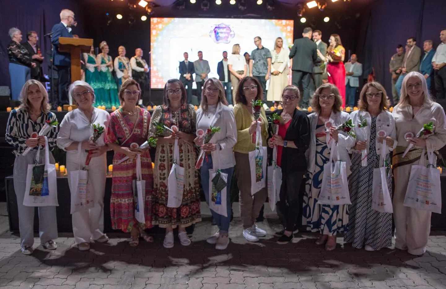 Na abertura oficial do Natal dos Anjos, as voluntárias que ajudam no evento receberam uma linda homenagem e se reuniram para esta foto histórica: Angela Stoffel Saul, Miriam Petry, Marlise Zacharias, Claudia Goetz, Rosane Dillenburg, Anelise Vier, Noeli Backes,