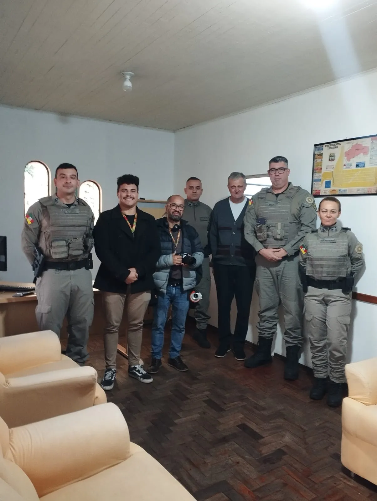 Estavam também presentes na oportunidade, Sargento Mônica e soldado Rodrigo, além dos integrantes da Comunicação do Governo do Estado, Dado Nogueira e Luiz André Pinto e do morador Wilson Gewehr que é parceiro da Brigada Militar