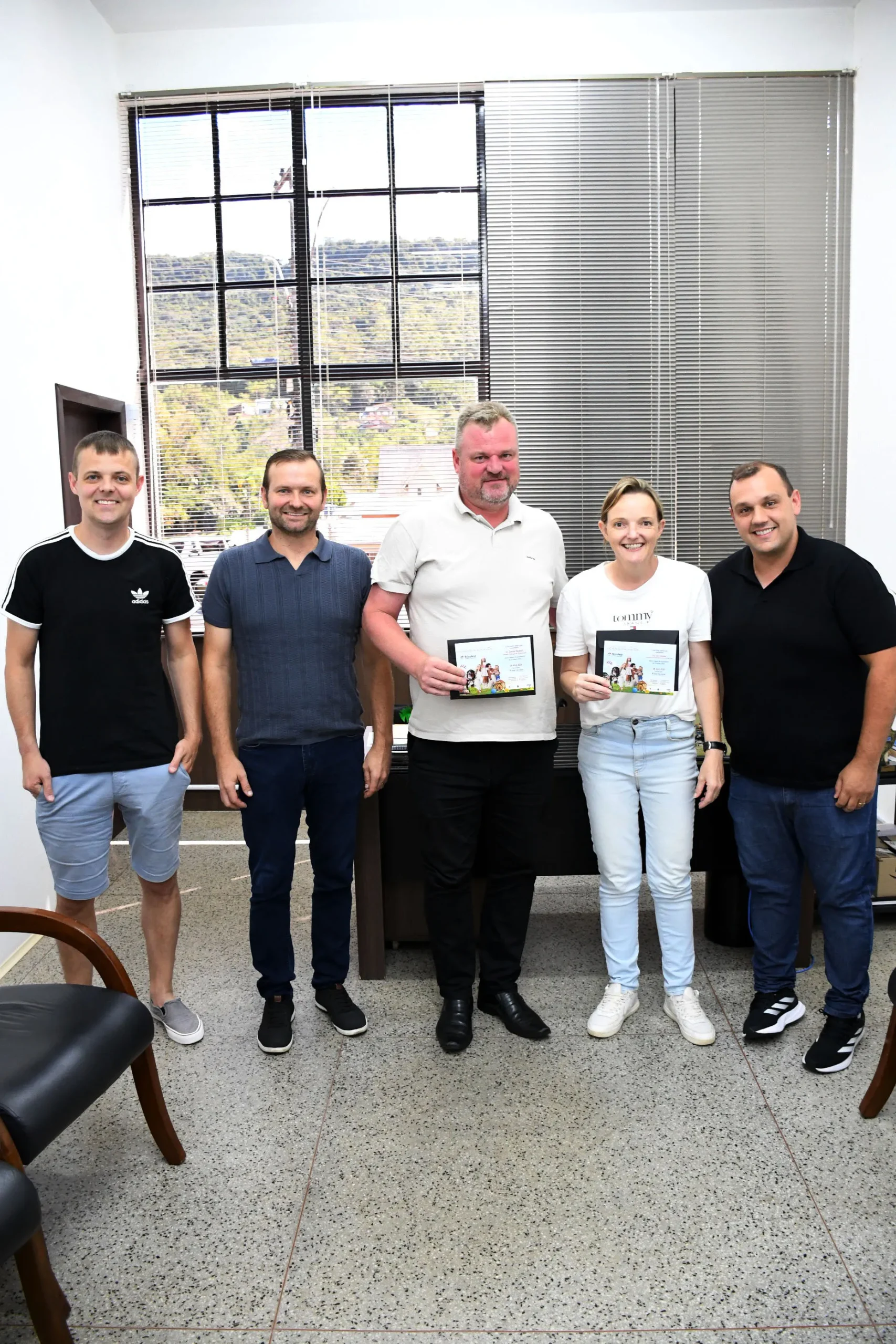 Nova Petrópolis/Picada Café – O prefeito Daniel Rückert e a secretária de Turismo, Indústria e Comércio, Cléri Spindler, receberam na terça-feira (31), representantes da equipe de coordenação da Tricofest. Estiveram presentes André Fernando Schmitt, Márcio André Kny e Jonas Knorst, que entregaram o convite para o lançamento da edição 2026 da maior feira de malha tricot do Sul do Brasil. O evento de lançamento está marcado para o dia 8 de abril, em Nova Petrópolis, e reunirá autoridades, imprensa regional e estadual, expositores e convidados, marcando o início de mais uma edição que promete fortalecer o setor e atrair grande público. Durante o encontro, os coordenadores destacaram o otimismo em relação à próxima edição, a quinta da Tricofest, consolidando o evento como referência no segmento. Em Nova Petrópolis, a programação ocorrerá ao longo de sete finais de semana, de 08 de maio a 21 de junho. Já em Picada Café, a feira será realizada em quatro finais de semana, de 03 a 26 de julho. A expectativa é de mais uma edição de sucesso, reforçando a Tricofest como vitrine da produção local e importante impulsionadora do turismo e da economia regional.