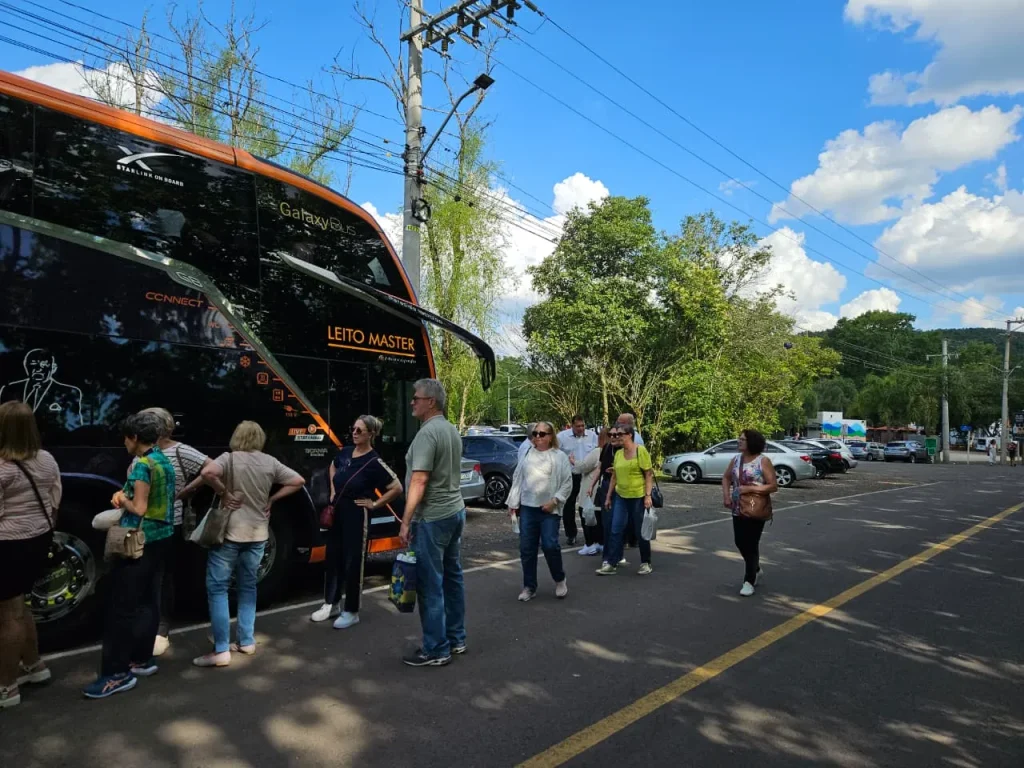Turismo em alta: Cinco ônibus turísticos trazem mais de 200 pessoas ao Núcleo de Casas Enxaimel