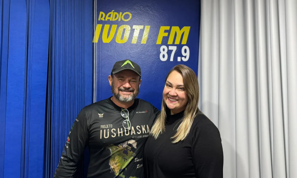 Região Veja entrevista completa com PC Escudero, ivotiense que percorreu cerca de 60 mil km e visitou 17 países de moto 03/09/2025 - 20h22min PC Escudero e a apresentadora Juju Bueno Tópicos Relacionados: