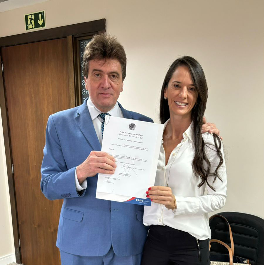 Estância Velha – Conforme a Portaria 243/2024 da Ordem dos Advogados do Brasil (OAB/RS) Seccional do Rio Grande do Sul, o presidente Leonardo Lamachia, concedeu um Certificado nomeando a veterinária da Prefeitura de Estância Velha Tatiana Amaral Guerra, como membro consultora da Comissão Especial de Proteção e Defesa dos Direitos dos Animais da OAB/RS, triênio 2022/2024. Tatiana recebeu o certificado na última sexta-feira, 19 de abril, das mãos do presidente da Comissão, Jaime Valverdu, na sede da entidade em Novo Hamburgo.