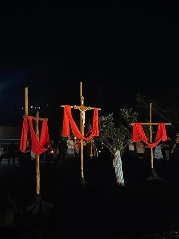 A Via Sacra Luminosa, realizada nesta Sexta-feira Santa (03/04), reuniu a comunidade para a encenação do caminho de Jesus até a cruz, juntamente com a reflexão das sete últimas palavras, tocou o coração dos presentes e reforçou o verdadeiro significado da Páscoa: amor, entrega e esperança.