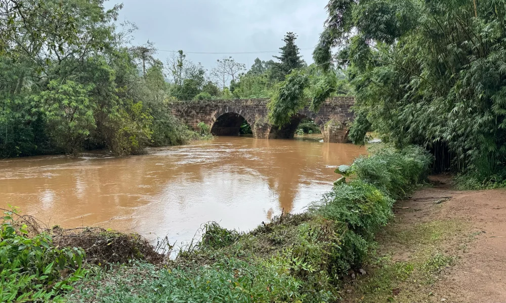 Região Vídeo: veja situação do Rio Feitoria em Ivoti 19/06/2025 - 11h12min Rio Feitoria no trecho que passa pelo Núcleo de Casas Enxaimel (FOTO: Geison Concencia) Tópicos Relacionados: