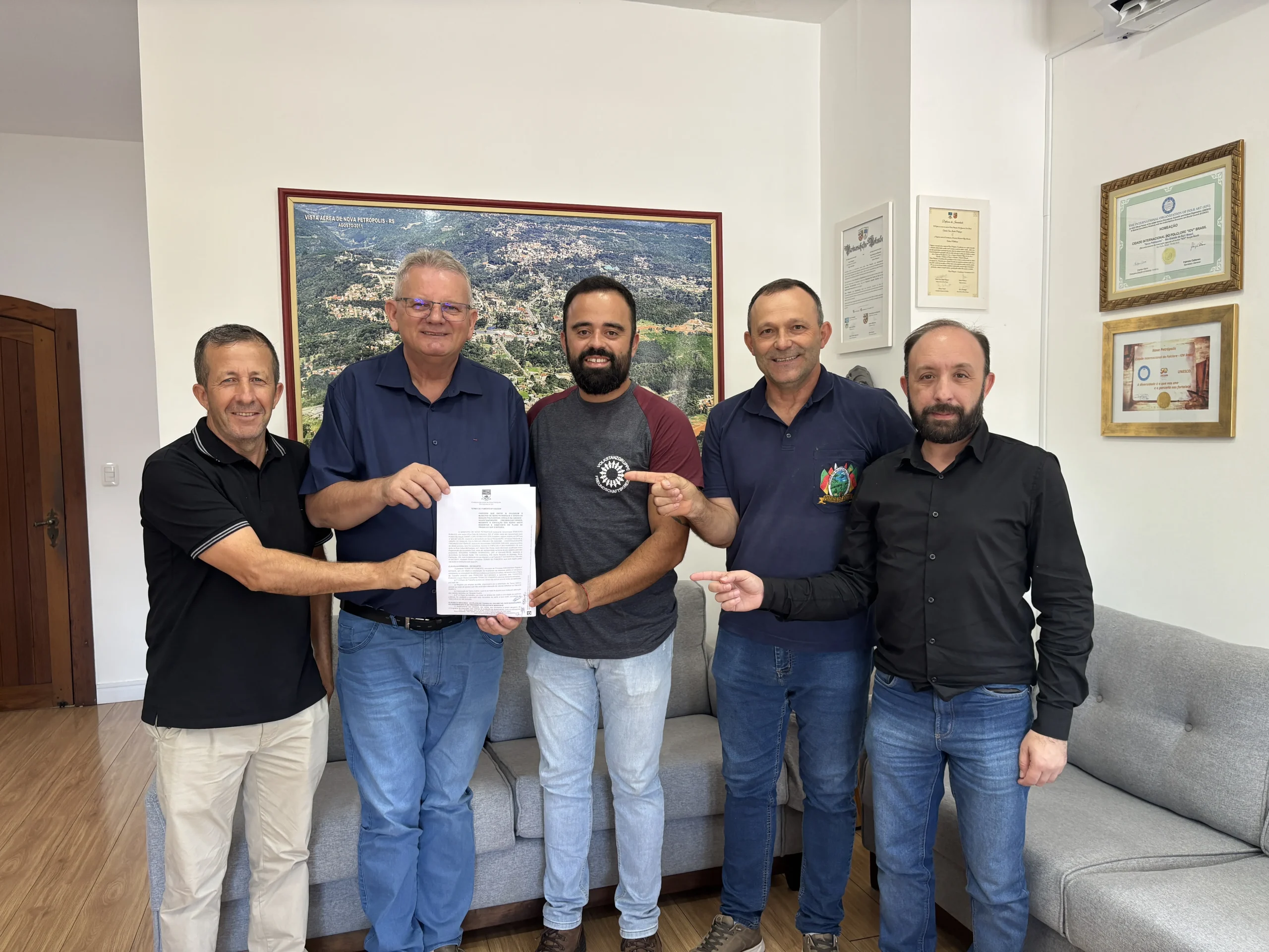 Nova Petrópolis – O prefeito Daniel Carlos Michaelsen assinou, na tarde de quarta-feira, 1º de abril, o repasse de R$ 16.880,18 para o Grupo de Danças Folclóricas Círculo da Amizade (Volkstanzgruppe Freundschaftskreis), de Vila Olinda. O ato, realizado no Gabinete Oficial, contou com a participação do presidente da entidade, Eduardo Ferrari Rodrigues, e formalizou a entrega dos recursos provenientes de emendas impositivas destinadas pelos vereadores Tarcísio Brescovit, no valor de R$ 11.880,18, e Plinio Rodrigues dos Santos, no valor de R$ 5.000,00.