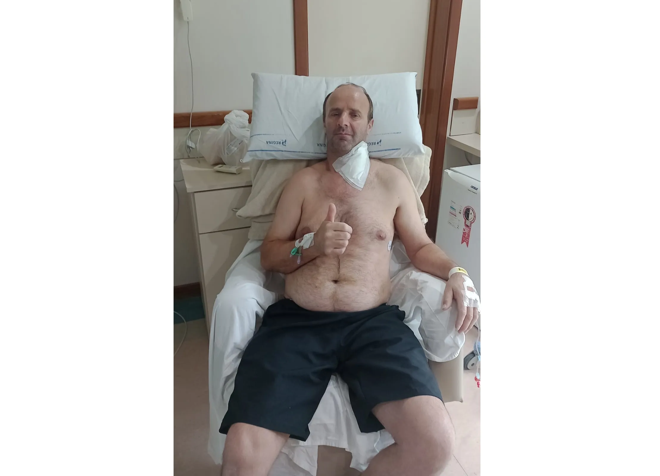 Ela contou que um senhor faleceu perto deles e as enfermeiras tiveram que reaproveitar tudo o que podiam para outra pessoa. “Higienizaram para usar em outros paciente. As coitadas das enfermeiras tinham que revirar as gavetas para achar luvas ou gazes. Já no Regina, parecia que a gente estava em um hotel, não no hospital.”