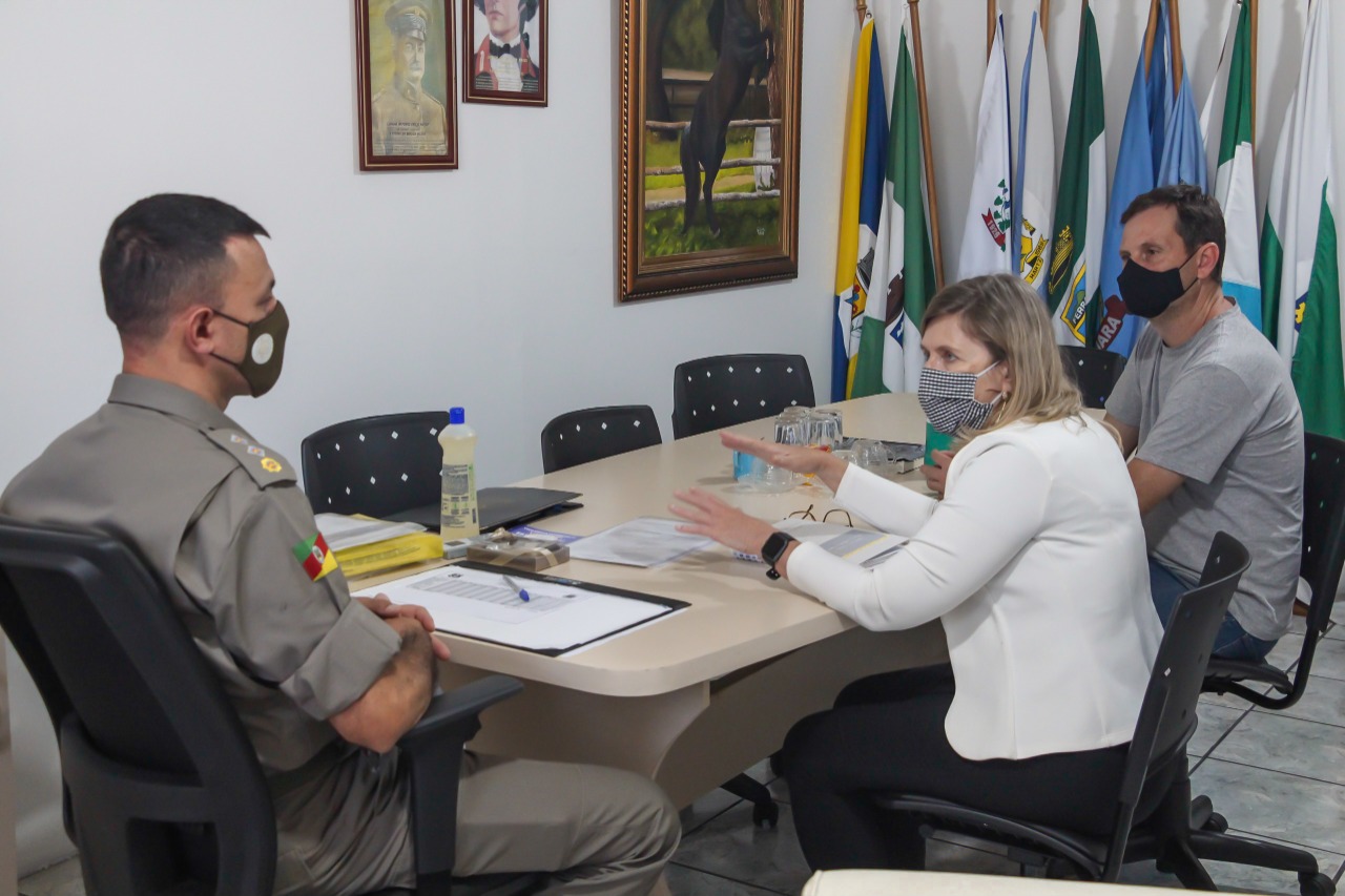 Morro Reuter – A segurança pública esteve na pauta de reunião da prefeita Carla Chamorro e vice-prefeito Aírton Bohn com comandante do 32º BPM, major Pedro Alexander Beron da Cunha. O encontro na sede do batalhão foi sexta-feira (3). Carla e Aírton abordaram a segurança no município e solicitaram a possibilidade de emprego de mais efetivo de policiais. O Comando do 32º BPM afirmou que avaliará as demandas sob a ótica dos indicadores criminais do município bem como outras particularidades levadas pelo Executivo.