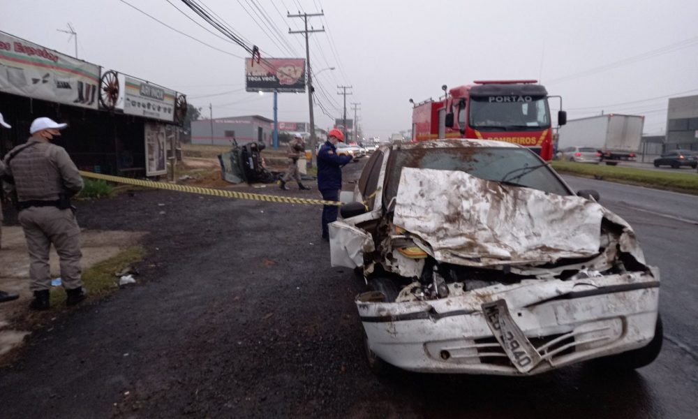 Portão – Três pessoas morreram e outras duas ficaram feridas após um gravíssimo acidente de trânsito na manhã desta segunda-feira, na ERS-240, em Portão, no Vale do Sinos. De acordo com o Comando Rodoviário da Brigada Militar (CRBM), dois veículos colidiram de frente, um Fiat Palio, com placas de Campo Bom, e um Volkswagen Gol, emplacado em Portão.