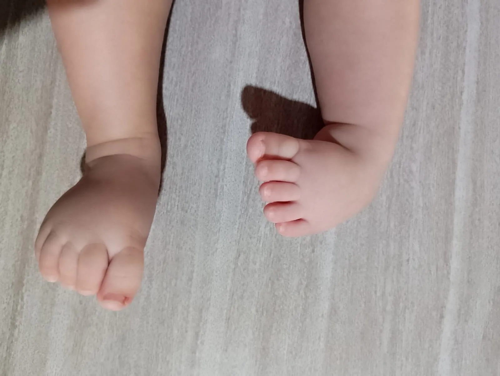 Imagem mostra o pezinho torto.